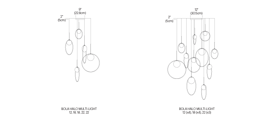 Expressive InterplayWe've created the Bola Halo by mating our signature Bola pendant with a delicately balanced chromated ring hand crafted in stainless steel. Bola Halo's rings come to life in intersecting groupings invoking a sense of play and movement that is sure to be the focal point in any room.
