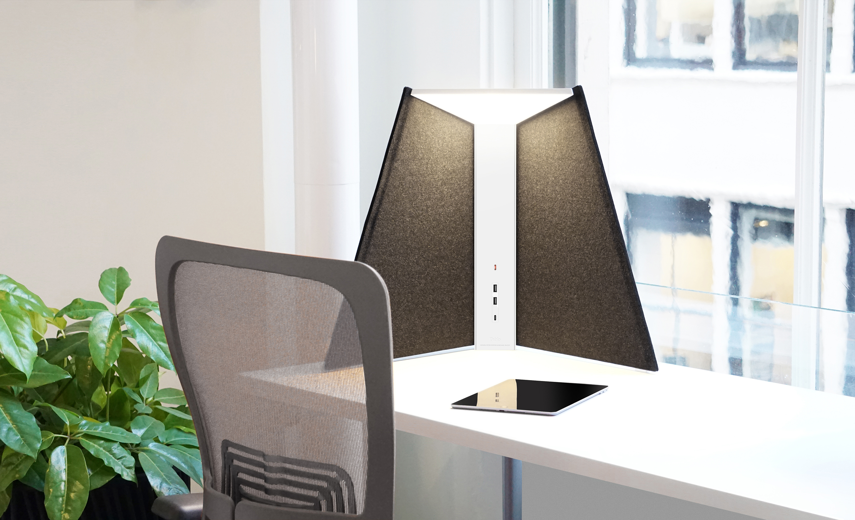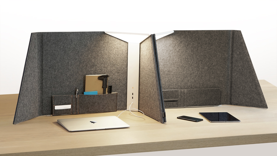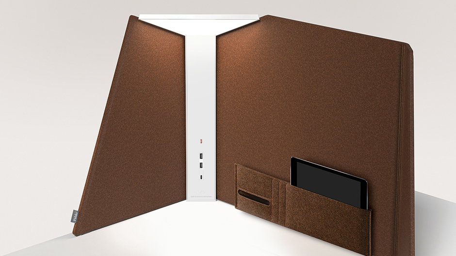 Today, everyplace is a workplace. Due to the constantly changing landscape of work, the new open workplace can be inconvenient, uninviting and distracting. Corner Office is designed to enhance the flexibility and efficiency of today’s open plan workplace by defining personal space in these dynamic environments. It contributes to motivation, efficiency and well-being; providing visual privacy, sound reduction, task lighting, and desktop power. Corner Office provides light, power and privacy in a flexible desktop unit that is perfect for shared desking groups as well as home office situations. It is an instant ergonomic upgrade to existing open tables and desks. A pop-up desktop office in a box requiring minimal installation time.