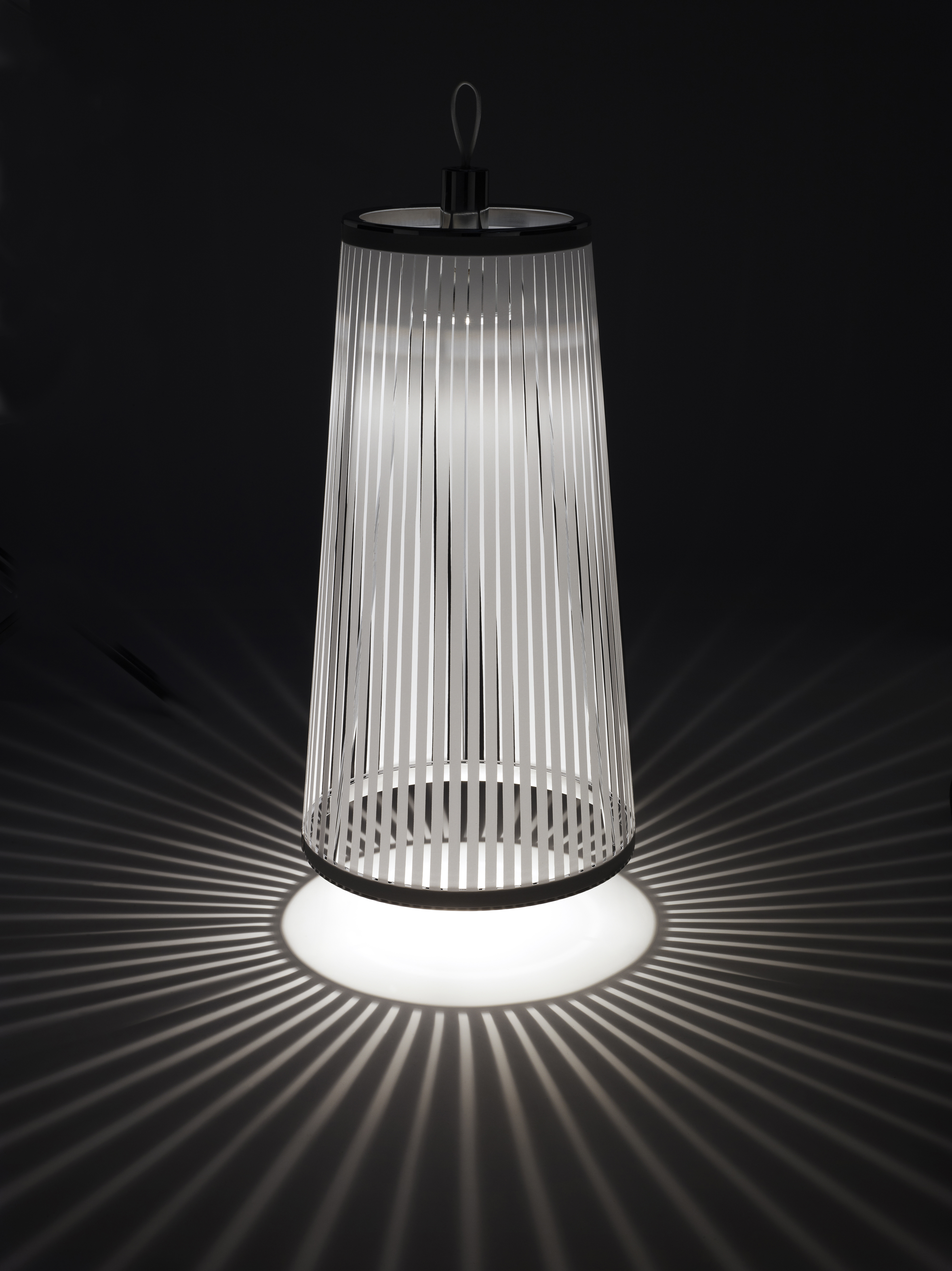 In creating Solis, designer Carmine Deganello set out to engage with light in its archetypal form: the sun’s rays. The resulting piece is an engaging blend of light and shadows, casting shimmering rays and radiating patterns onto a space. The effect is a sense of weightlessness — and a redefined environment that invites a new kind of relationship with the light source. A suspension lamp made of lightweight polyester fabric and stainless steel, Solis can be used as a pendant, hung from a wall, or as a freestanding, portable luminaire.