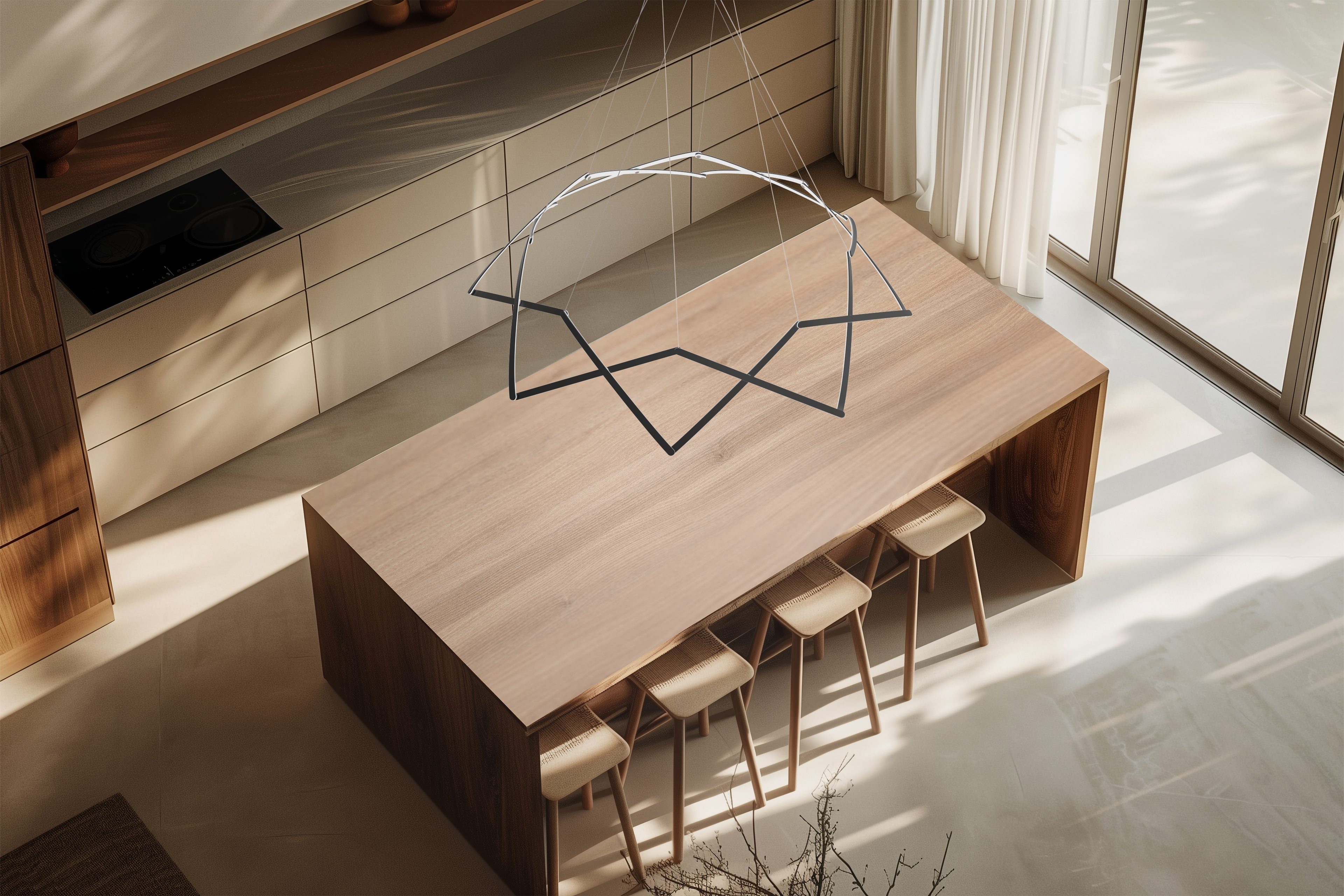 Stella is offered in two matte painted finishes in Graphite and Sand. Its playful and highly interactive design invites a new kind of relationship with the light source. Ideally suited over table surfaces, entryway foyers, or in expansive chandelier groupings.