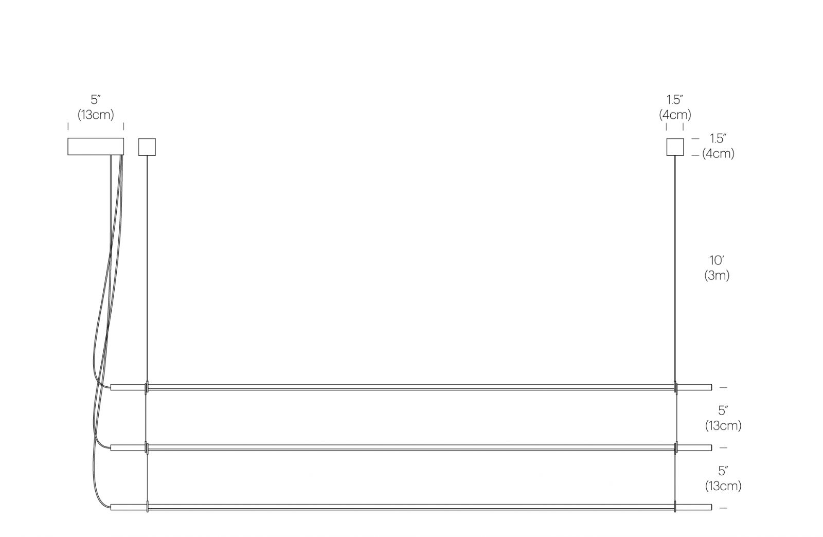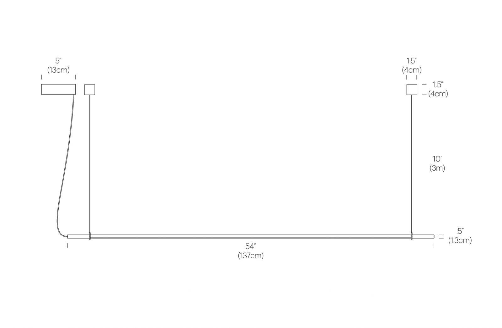 These core foundational elements make up the T.O Pendant system allowing for an infinite range of suspension possibilities. Aluminum Light arm 54”(137cm) with detachable 10’(305cm) power cable, 2x 10”(300cm) Woven Nylon Suspension Belts with mounts, 5”(12.7cm) Multi-light Steel Canopy with 24W Driver, and Add-on 5”(12.7cm) Nylon Jumper for stack versions.