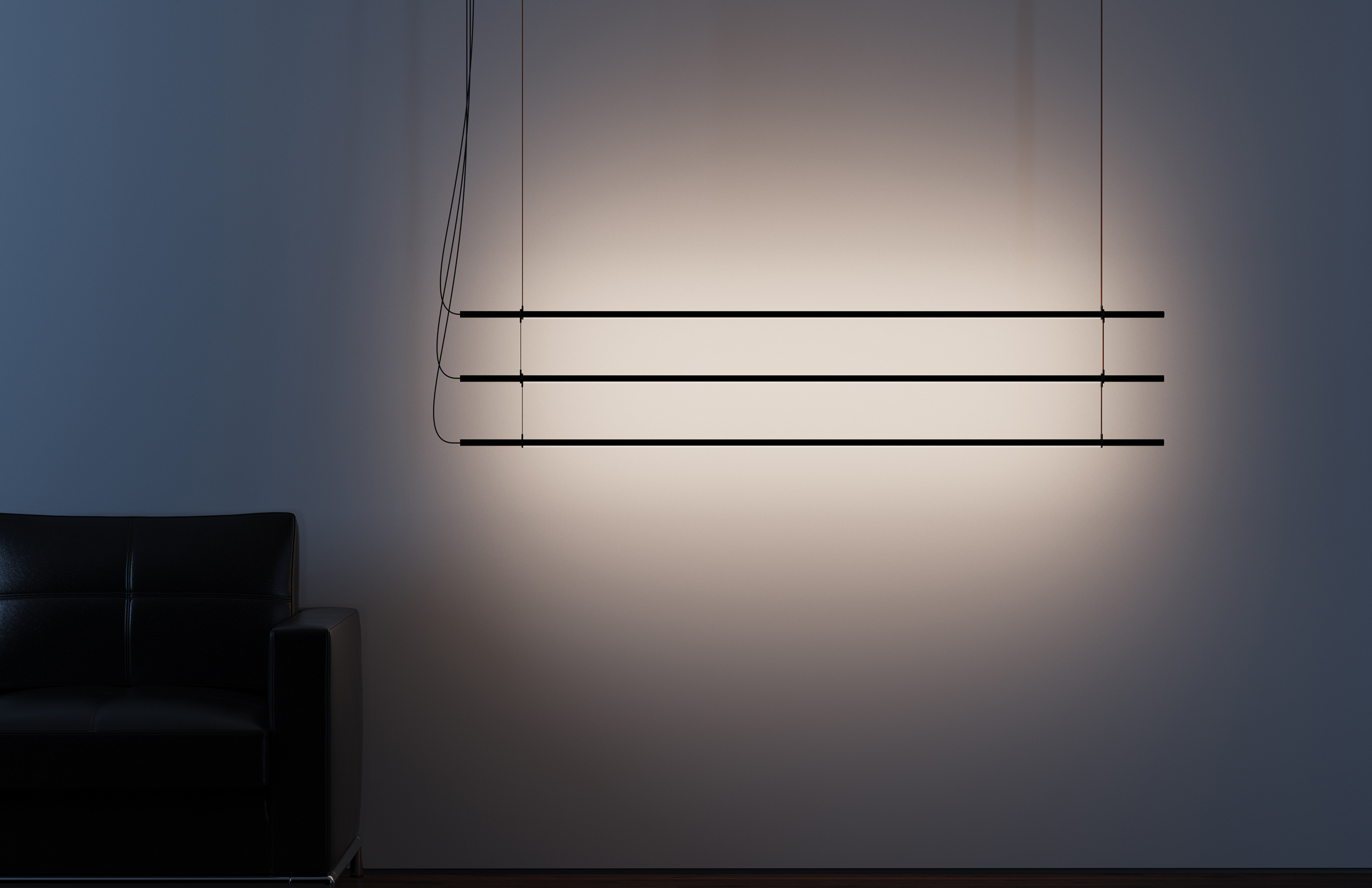 Linear FlexibilityT.O Pendant's highly flexible mounting system allows for a multitude of customized configurations from linear to multi-level and multi-axis chandelier groupings with a focus on minimizing the number of power points with multi-light canopies. Each pendant features an elegant 2mm braided cable which is routed directly to a shared junction box. Suspension belts are available in 3 colorways to allow mixing and matching for ultimate creativity and playfulness within the system.