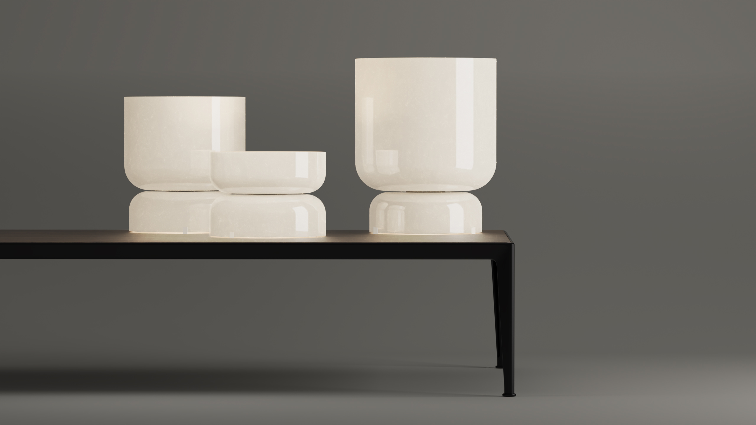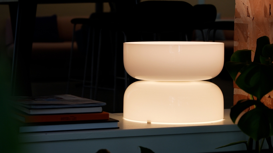 Pure GeometryTotem’s soft geometric forms are made of hand-blown opal glass. Shades transform from a bright white to a warm amber